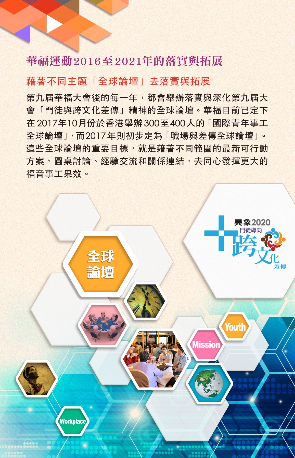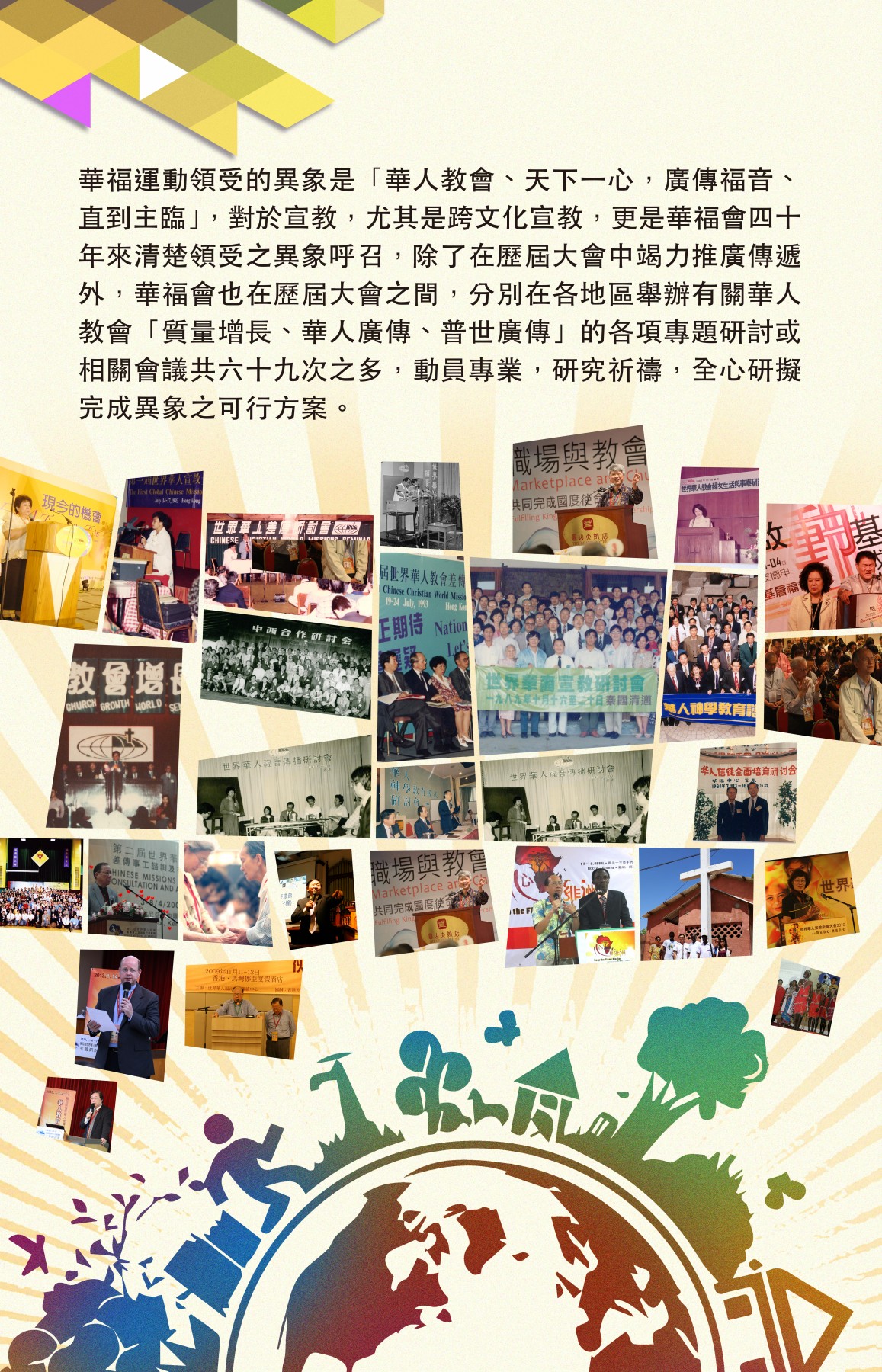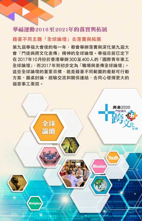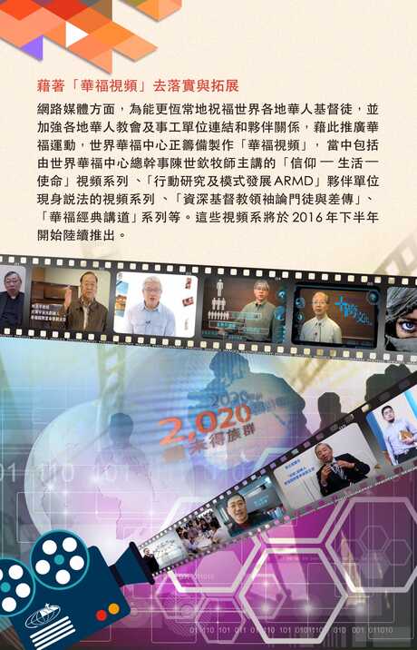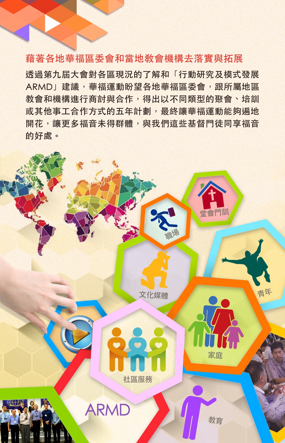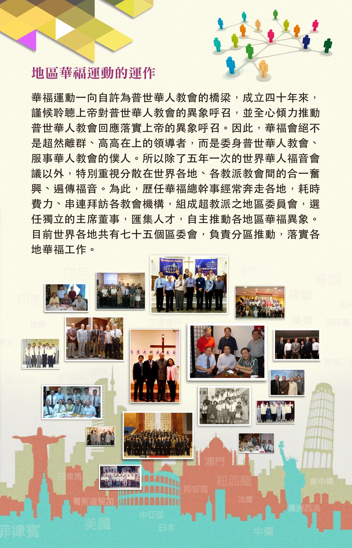 藉著各地華福區委會和當地教會機構去落實與拓展